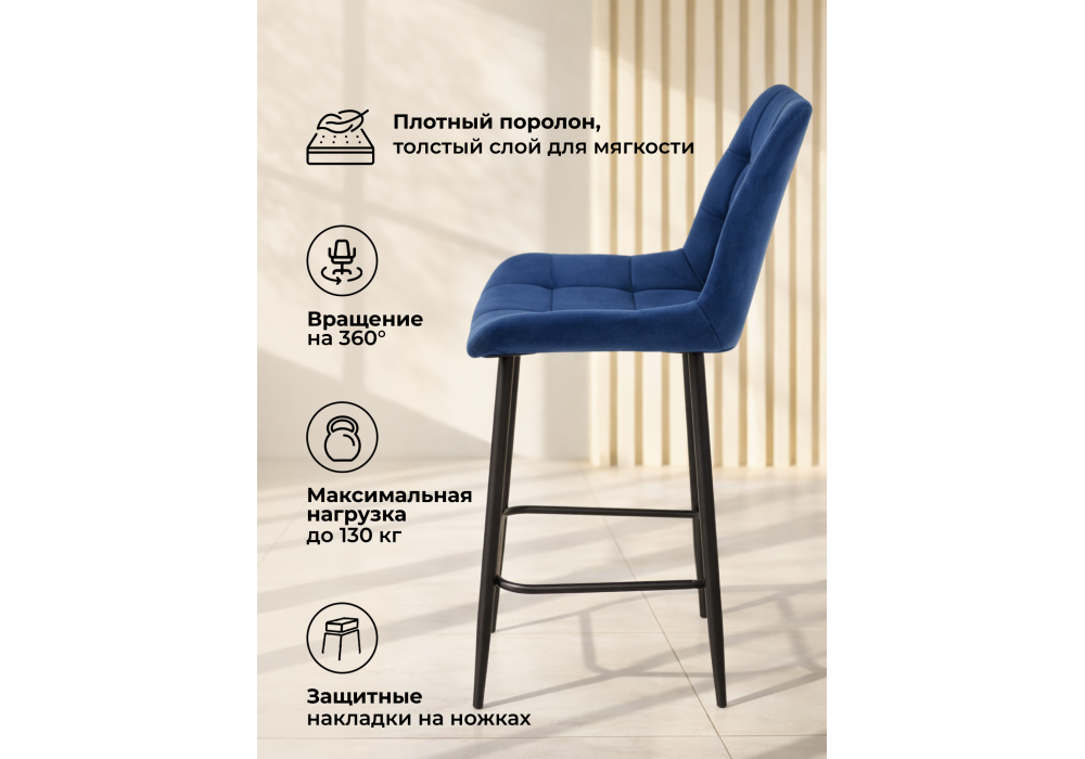 Барный стул поворотный Woodville Челси 360 синий (zd 798) / черный np 632580 в Таганроге