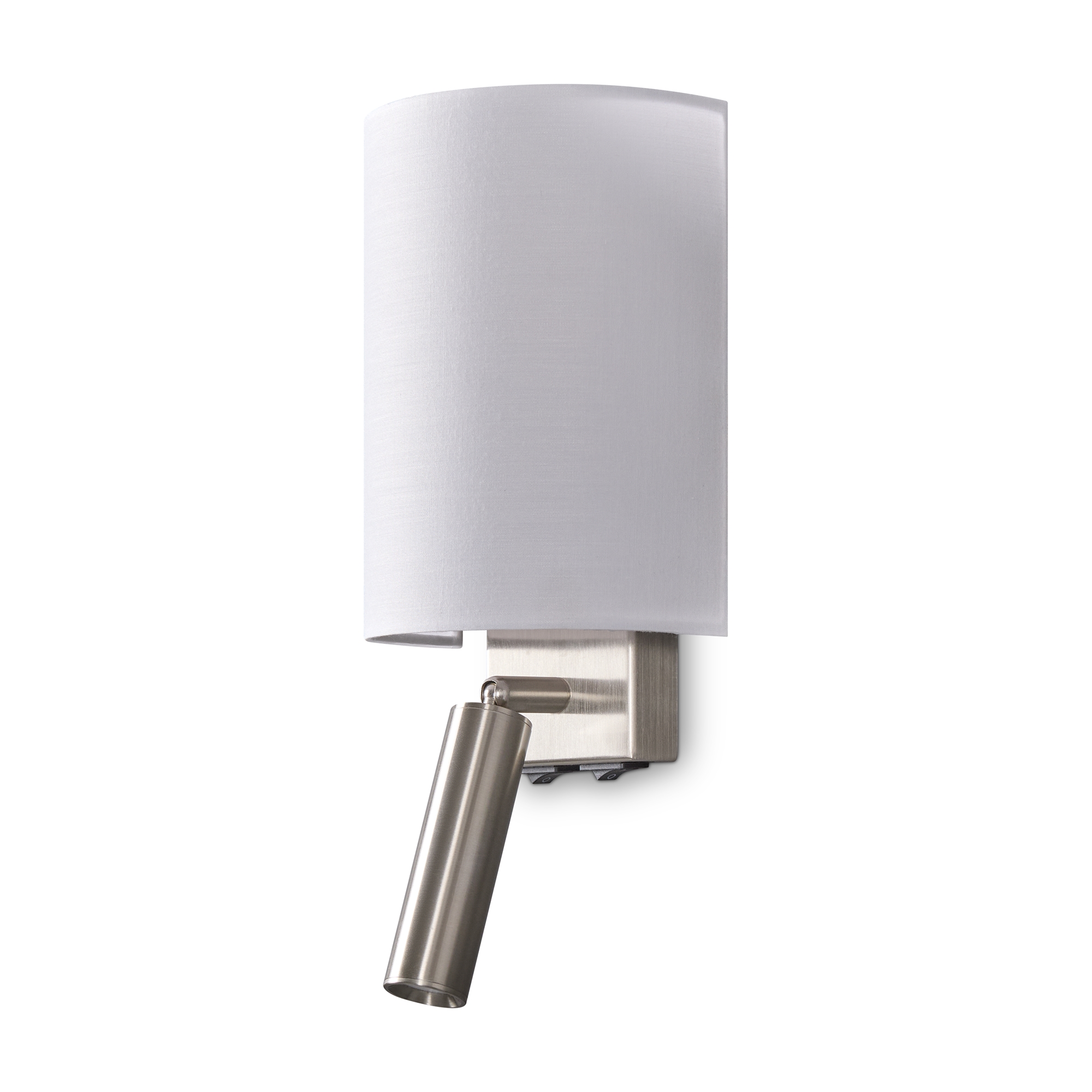 Цилиндрической формы абажур из ткани белого цвета. Декоративная парящая окантовка из металла в цвет арматуры. Регулируется по длине. Компактные размеры подходят для низких потолков и небольших интерьеров. Металлическая арматура, цвет - латунь и никель. Источник света — лампа с цоколем Е14, E27 и для настенного бра дополнительный LED с температурой свечения 3000 K.