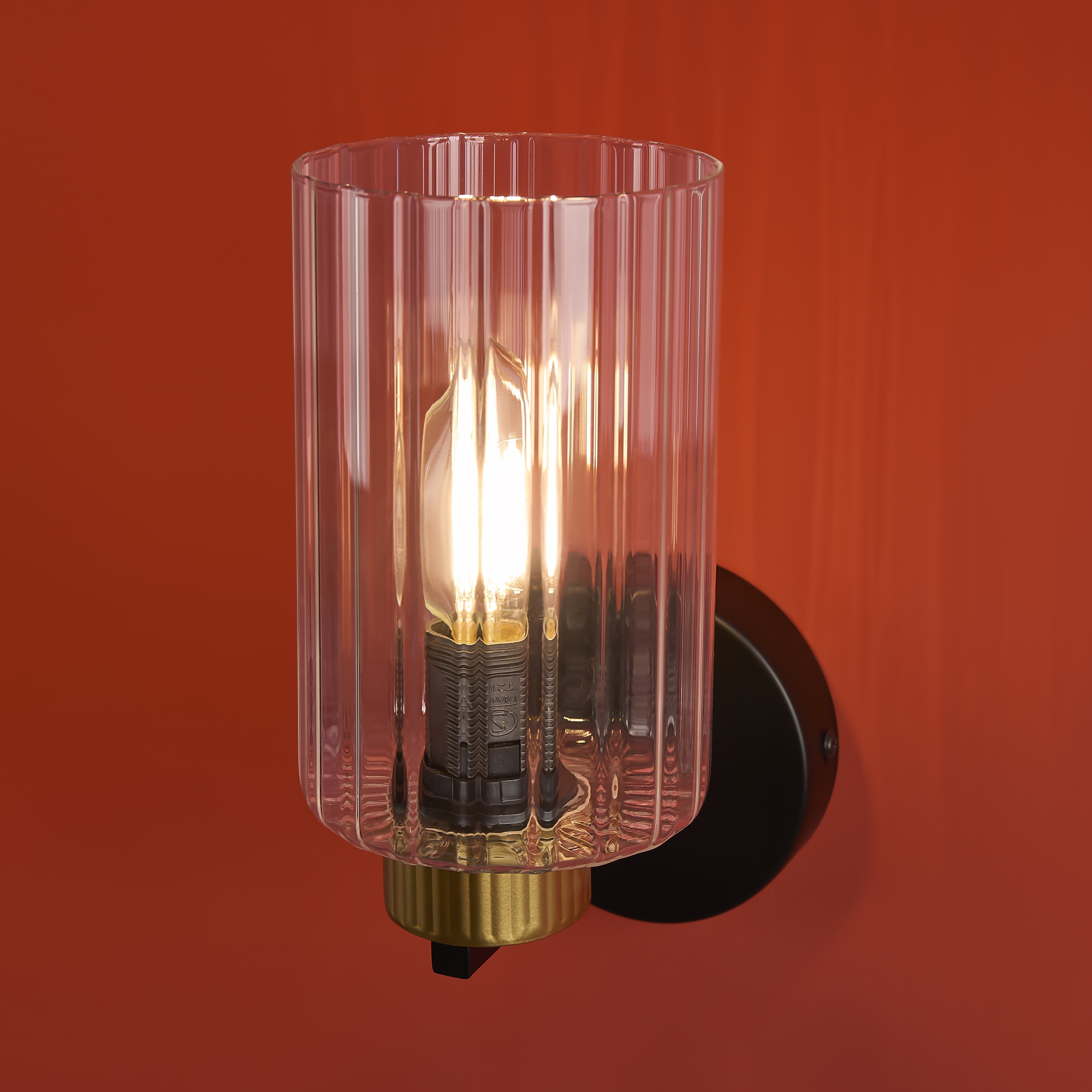 Металлическая арматура чёрного матового цвета с латунными вставками. Прозрачные цилиндрические стеклянные абажуры. Лампы E14 (не включены). Трендовое сочетание для современных интерьеров.