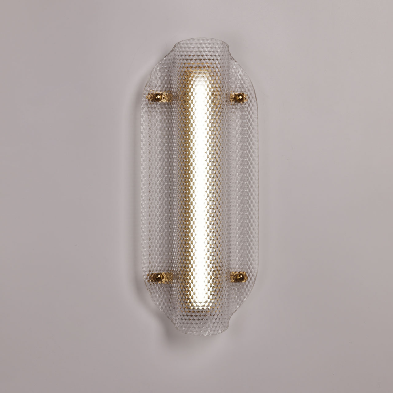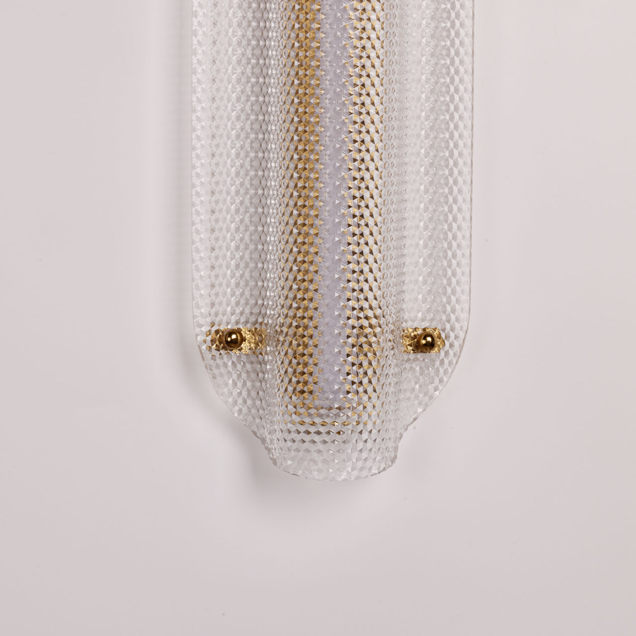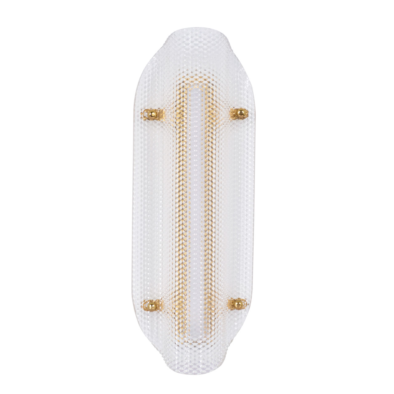 Металлическое основание настенного бра гальванизировано в цвет латуни. Плафон выполнен из прозрачного фактурного литьевого акрила.