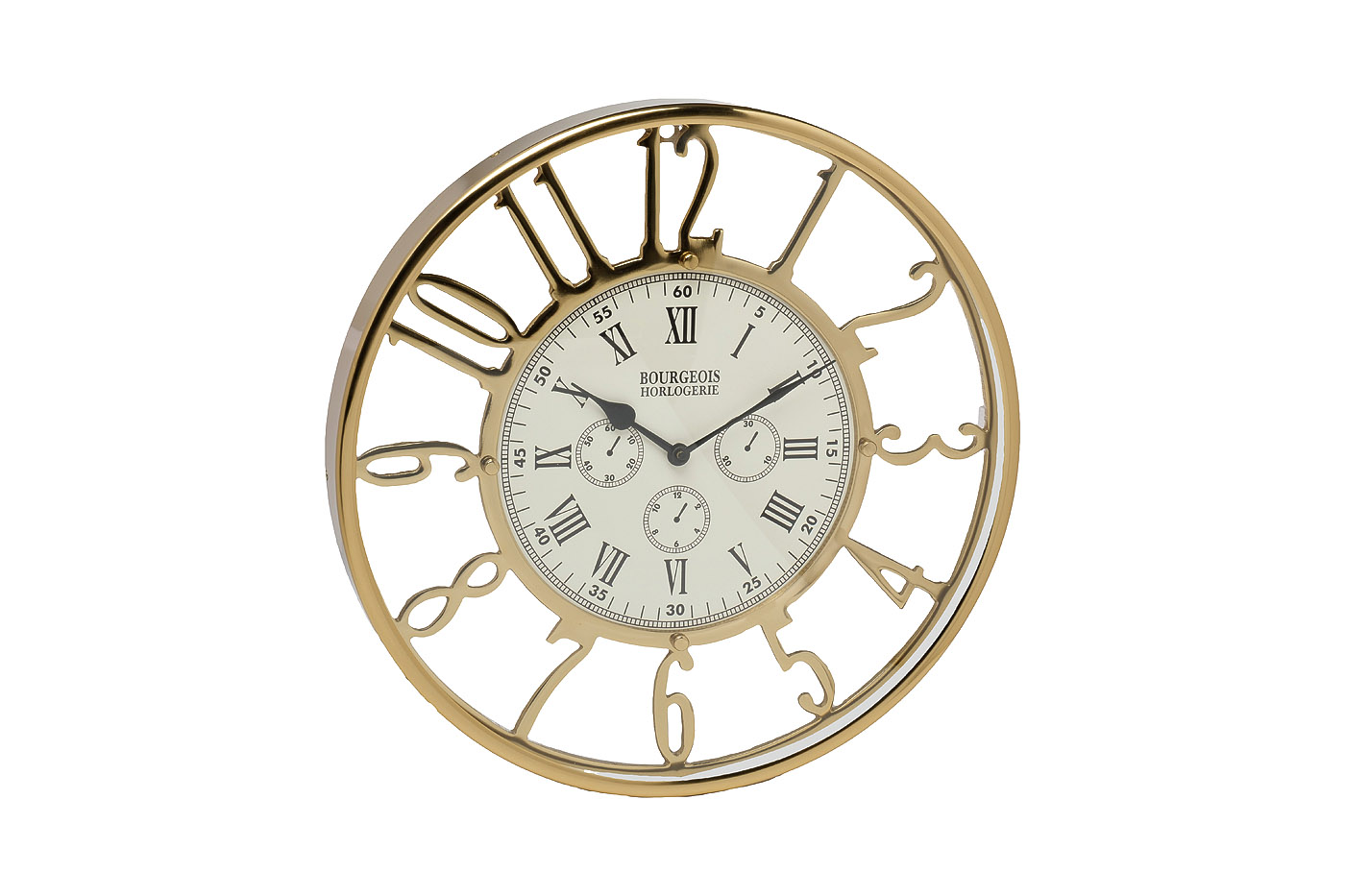 Круглые настенные часы классического дизайна с крупными цифрами украсят собой любой современный интерьер. Благодаря золотому блеску металла они привнесут шика и нотку роскоши в жилую обстановку. Настенные металлические часы будут эффектно смотреться на стене в гостиной, спальне, столовой, прихожей. Изюминкой модели является двойной циферблат с арабскими и римскими цифрами, поэтому модель идеально подойдет для детской комнаты. Корпус выполнен из позолоченного металла, который красиво сверкает и придает изделию особенной изысканности. Золотые настенные часы станут прекрасным подарком и дополнением к вашему интерьеру.