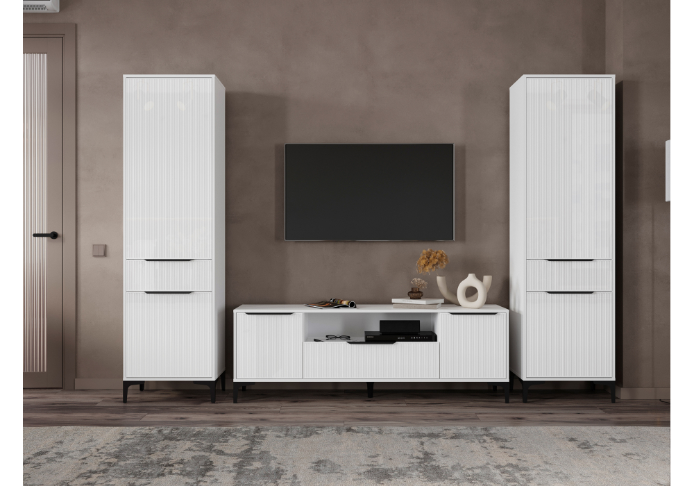 Купить "Готовая гостиная комплектация 9 Woodville Иадама белый глянец 620702"