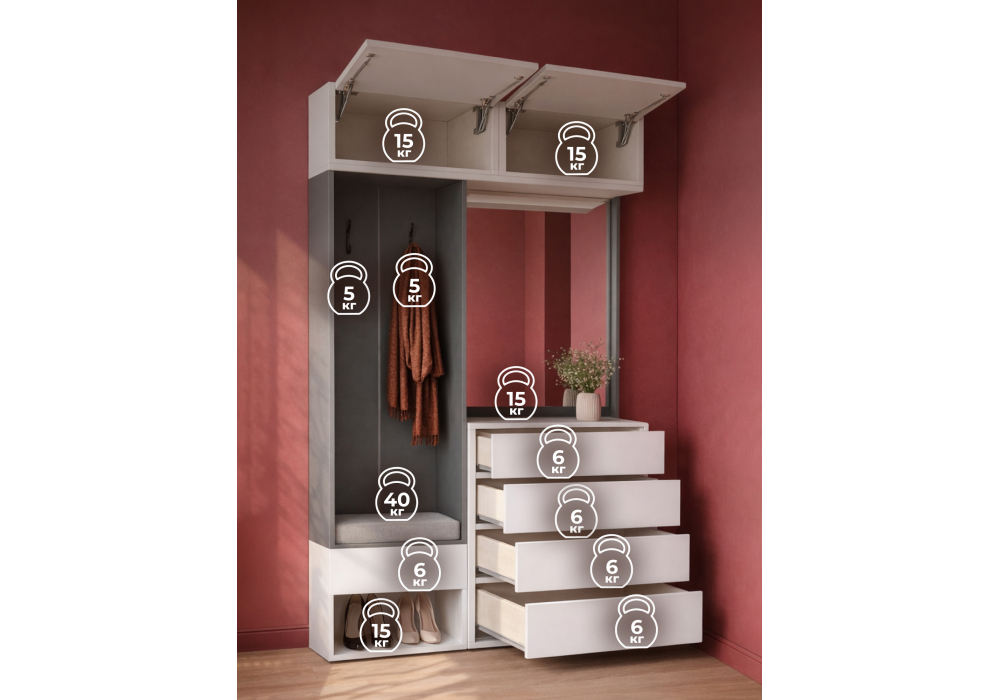 Состав комплекта 593733 -навесной шкаф , 619908- готовая прихожая , готовая прихожая -615371