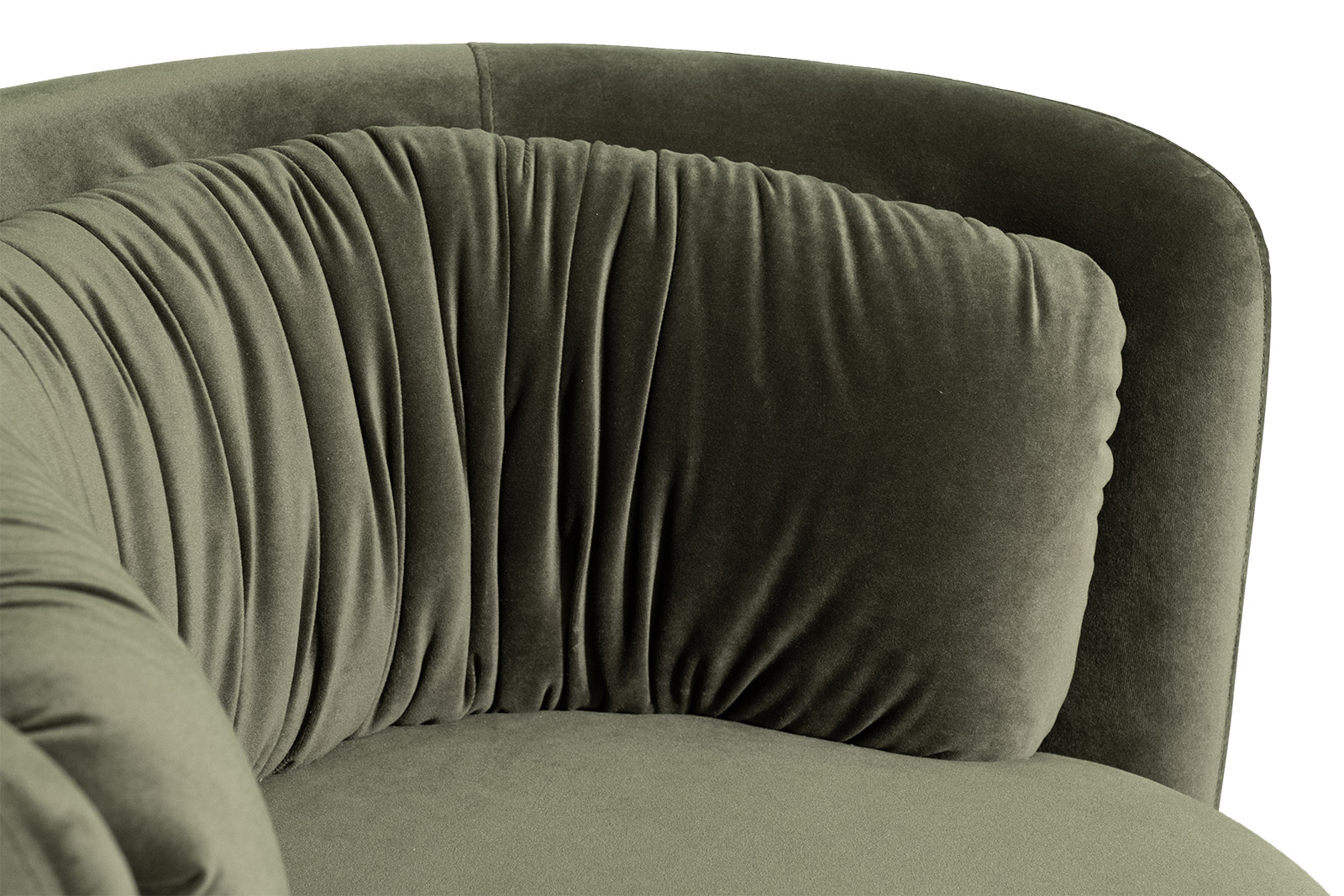 Эффектное поворотное кресло округлой формы – пример дизайнерской мебели, в которой сочетается высокий комфорт, превосходное качество исполнения и оригинальный дизайн. Эргономичная форма, низкая спинка, обивка из приятного на ощупь велюра, поворотный механизм – это зеленое велюровое кресло воплощает актуальные тренды интерьерной моды. Оно будет уместно смотреться в интерьерах ар-деко, шебби-шик, неоклассика, модерн. Благодаря каркасу из дерева и качественной обивке дизайнерское округлое кресло прослужит долгие годы.