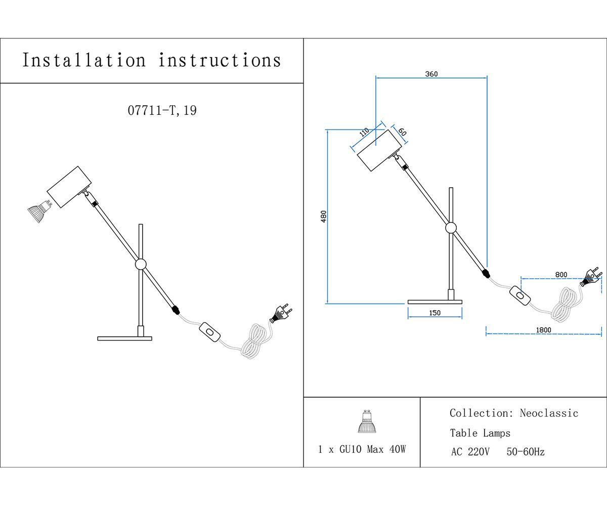 - Место установки: на стол