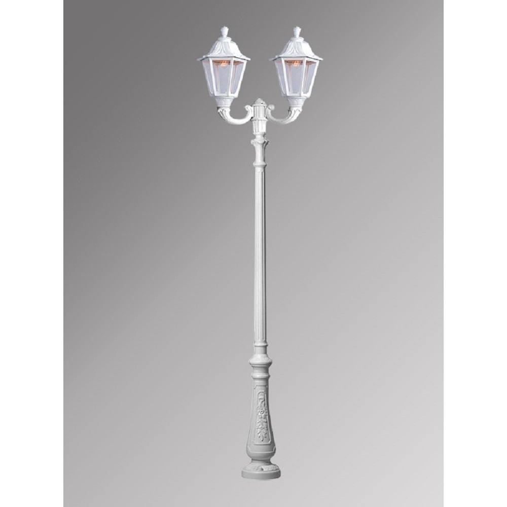 Парковый фонарь FUMAGALLI большого размера серии NOEMI, модель NEBO OFIR/NOEMI 2L. Парковый фонарь с 2 светильниками большого размера, на консолях OFIR среднего размера, установленных на классическом столбе NEBO высотой 2,5 м (+высота фонарей на кронштейнах). Изготовлены в Италии, по уникальным технологиям "FUMATECH" из современного композитного полимера RESIN. Этот материал в 5 раз прочнее металла, не ржавеет, не окисляется, не выгорает на солнце, его не нужно красить. Все светильники пыле-влаго защищены по стандарту IP55 (Пылезащищенные, защита от водяных струй с любого направления). Рассеиватель выполнен из антивандального, не мутнеющего и не горючего PMMA (ПолиМетилМетаАкрилат). Срок службы светильника - не менее 20 лет. Температура использования от -60 до +90. В серии NOEMI есть садовые фонари в настенном (OFIR/NOEMI, MIRRA/NOEMI) подвесном (SICHEM/NOEMI) и наземном исполнении (IAFAET.R/NOEMI, ALOE.R/NOEMI, ARTU/NOEMI, GIGI/NOEMI, RICU/NOEMI, NEBO/OFIR/NOEMI 1L, NEBO/OFIR/NOEMI 2L, TABOR/ADAM/NOEMI 3L) со столбами разной высоты, с разным количеством и конфигурацией голов. Консоли настенных фонарей и кронштейны светильников на столбах освещения могут устанавливаться в положение вверх и вниз. Столбы выше 150 см имеют в основе мощную стальную трубу с двойной оцинковкой. При заказе требуется выбрать цвет корпуса, цвет плафона и тип патрона (Е-27 или LED GX-53). Возможен светодиодный вариант. По стилю и дизайну серия уличных светильников NOEMI похожа на светильники среднего размера серии RUT и на светильники малого размера серии ANNA. По размеру относится к большим парковым светильникам как серия SIMON и GLOBE 400.