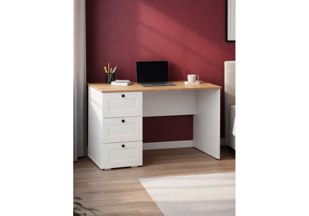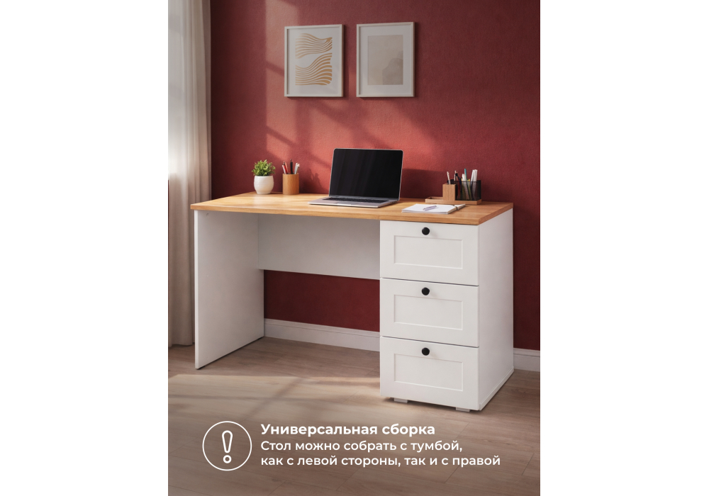 Купить "Письменный стол Woodville Опра белый шагрень / дуб золотой craft 676810"