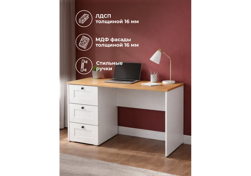 Письменный стол Woodville Опра белый шагрень / дуб золотой craft 676810 в Таганроге