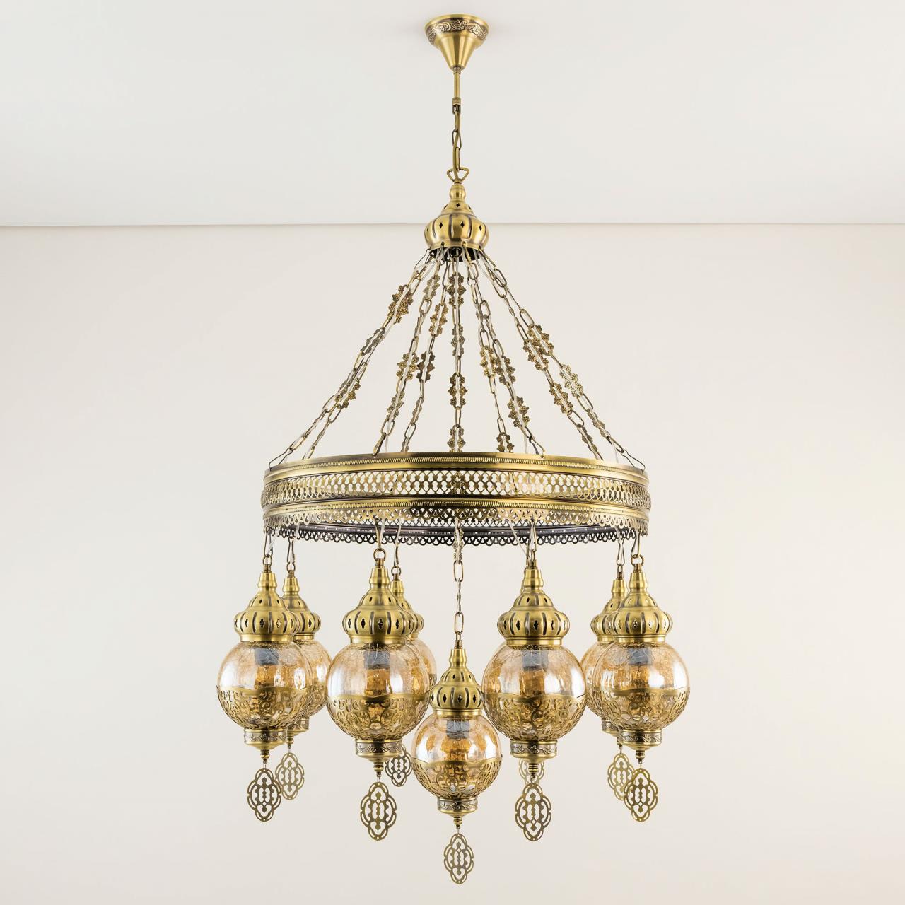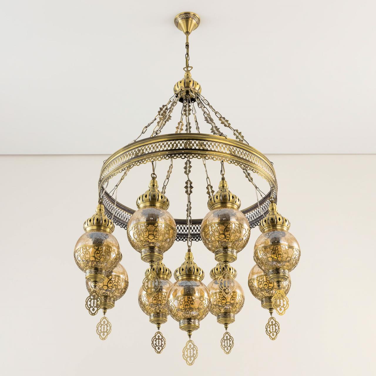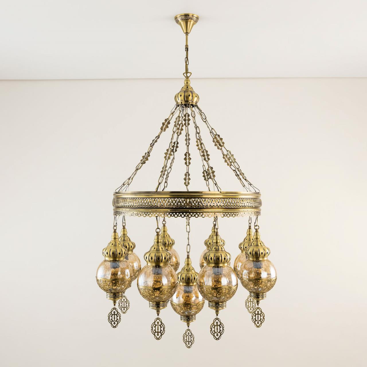 Восточная каскадная люстра CL419183от производителя Citilux принадлежит к коллекции Каир с девятью подвесными плафонами. Каркас металлический, цвет бронза. Плафоны в форме шара, изготовлены из прозрачного стекла медового оттенка, украшены декоративными, ажурными элементами. В изделии используются лампы с цоколем Е27, максимальной мощностью для ламп накаливания 75Вт. Светодиодные лампы можно устанавливать более яркие. Модель подходит для всех типов потолков, в том числе натяжных. Тип крепления – крючок. Люстра Каир CL419183 прекрасный вариант для атмосферного освещения интерьеров квартир и загородных домов, выполненных в восточном стиле. Это великолепное решение при оформления уютных кафе, баров и ресторанов , страна бренда Дания . Купить модель спешите в интернет магазине 220svet.ru