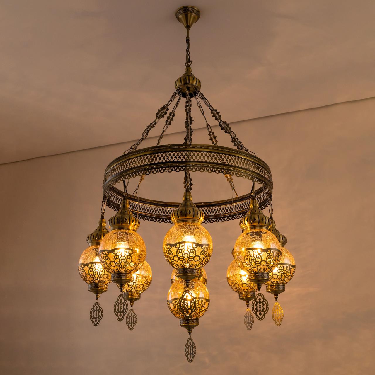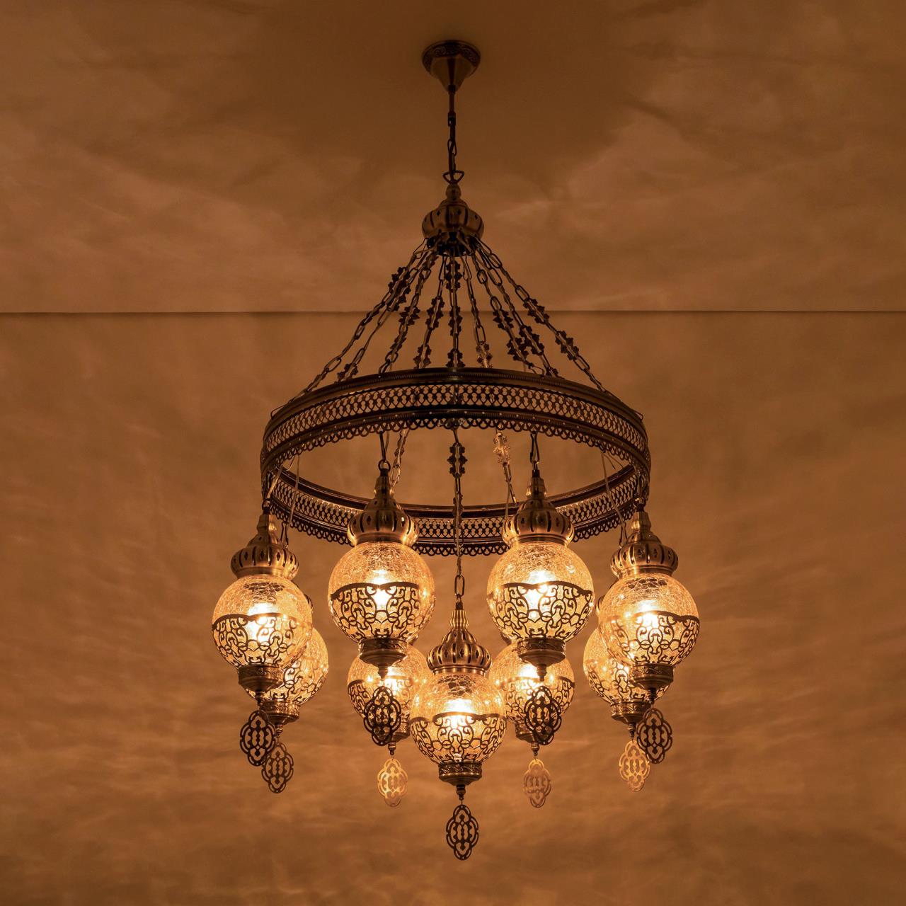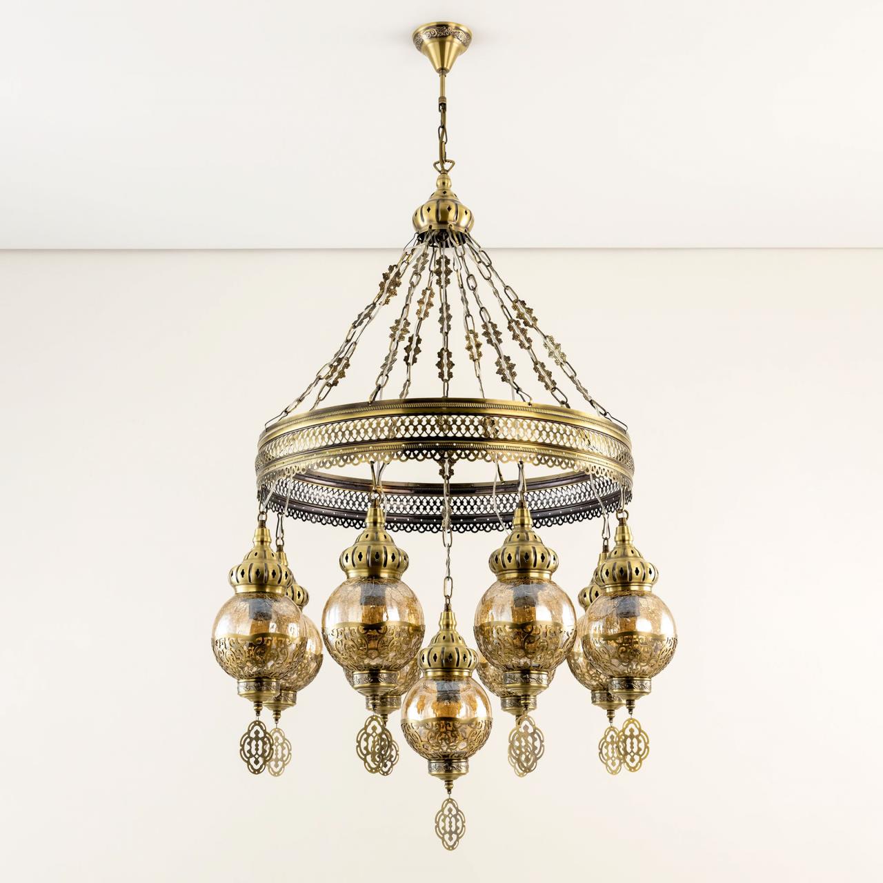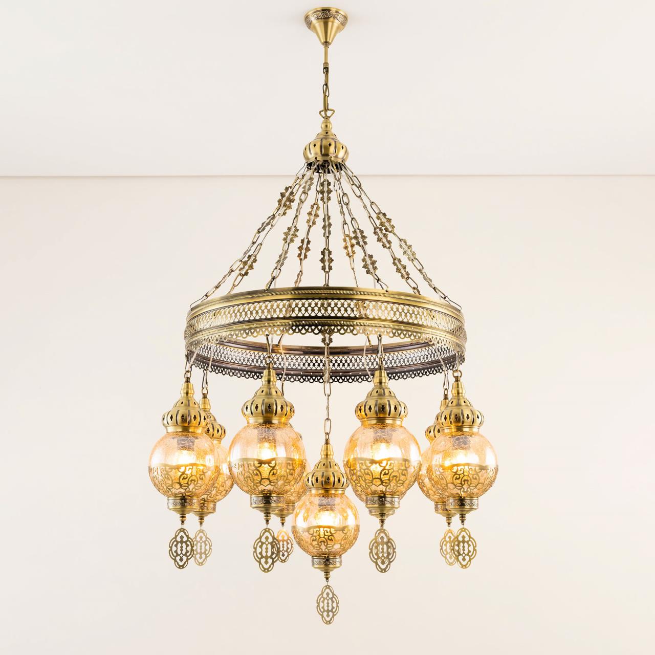 Восточная каскадная люстра CL419183от производителя Citilux принадлежит к коллекции Каир с девятью подвесными плафонами. Каркас металлический, цвет бронза. Плафоны в форме шара, изготовлены из прозрачного стекла медового оттенка, украшены декоративными, ажурными элементами. В изделии используются лампы с цоколем Е27, максимальной мощностью для ламп накаливания 75Вт. Светодиодные лампы можно устанавливать более яркие. Модель подходит для всех типов потолков, в том числе натяжных. Тип крепления – крючок. Люстра Каир CL419183 прекрасный вариант для атмосферного освещения интерьеров квартир и загородных домов, выполненных в восточном стиле. Это великолепное решение при оформления уютных кафе, баров и ресторанов , страна бренда Дания . Купить модель спешите в интернет магазине 220svet.ru