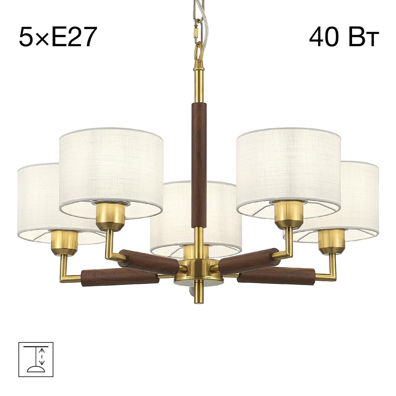 Высота подвеса регулируется, люстру можно подключить к выключателю на одну или две клавиши. В изделии используется 5 лампочек с цоколем Е27, но их нужно будет приобрести отдельно.
