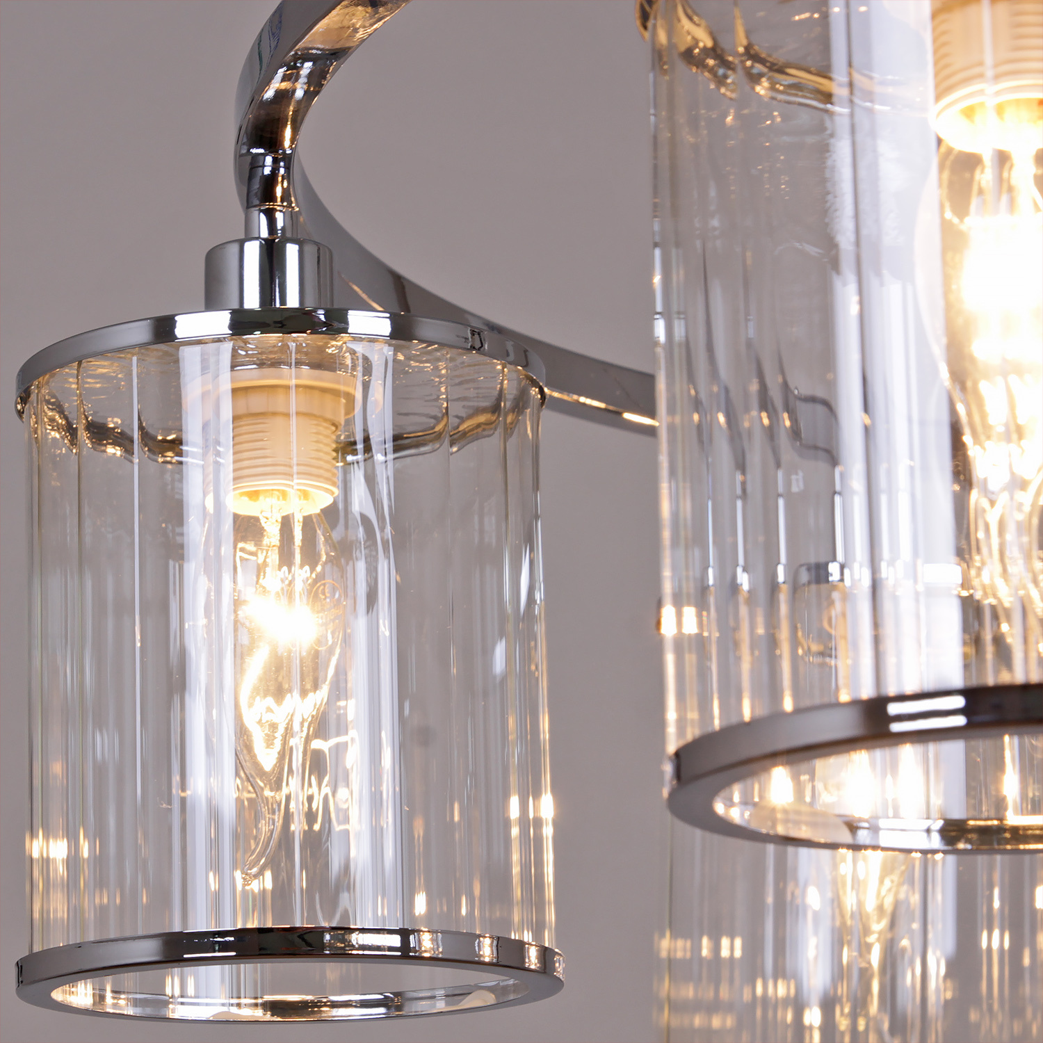 - Цвет плафонов: Прозрачный, Хром