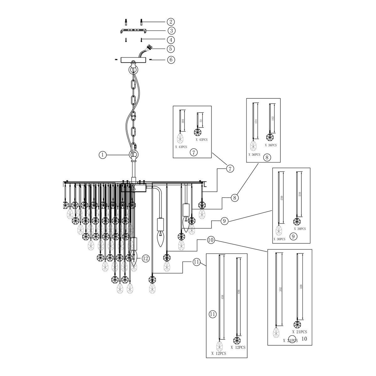 - Материал плафонов: Хрусталь