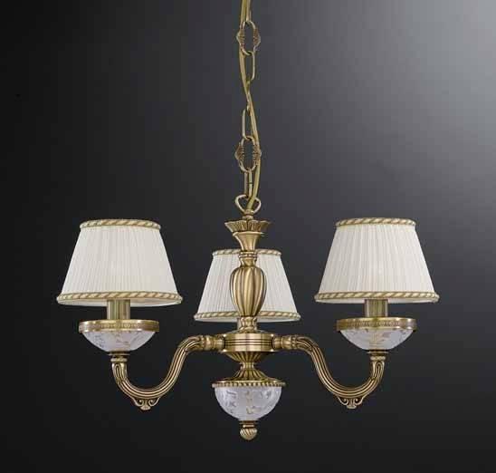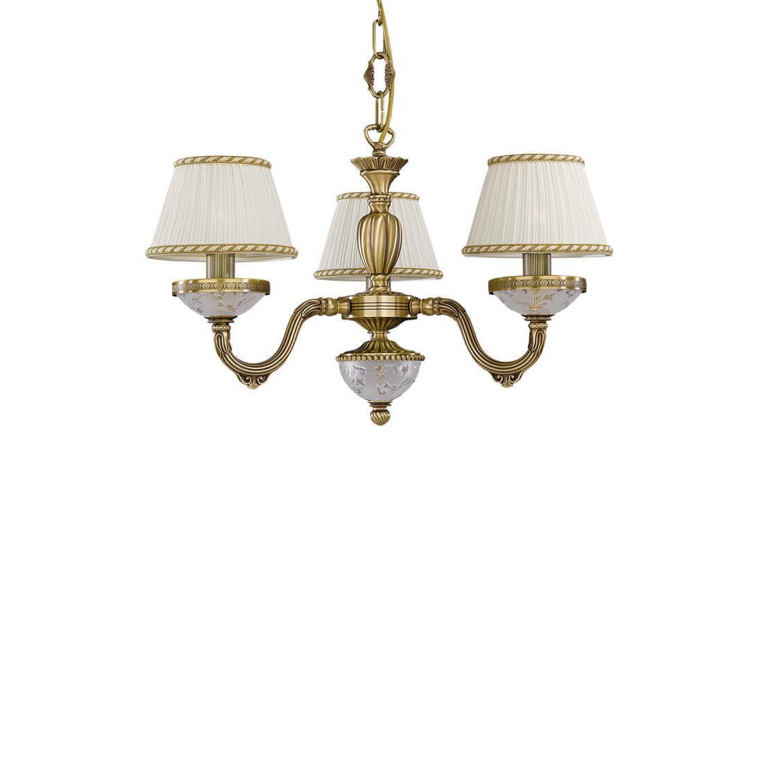 Подвесная люстра Reccagni Angelo L 6402/3 Итальянского производсва – уникальное сочетание высокого качества и удивительных фактур. Этот светильник Классического стиля хорошо подойдет Для спальни и придаст помещению мягкий и приятный свет. Плафоны белые из ткани. Арматура бронза из металла. Кол-во ламп - 3шт. Общая мощность 180W