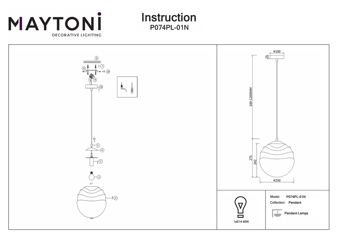 Купить "Подвесной светильник Maytoni Vinare P074PL-01N"