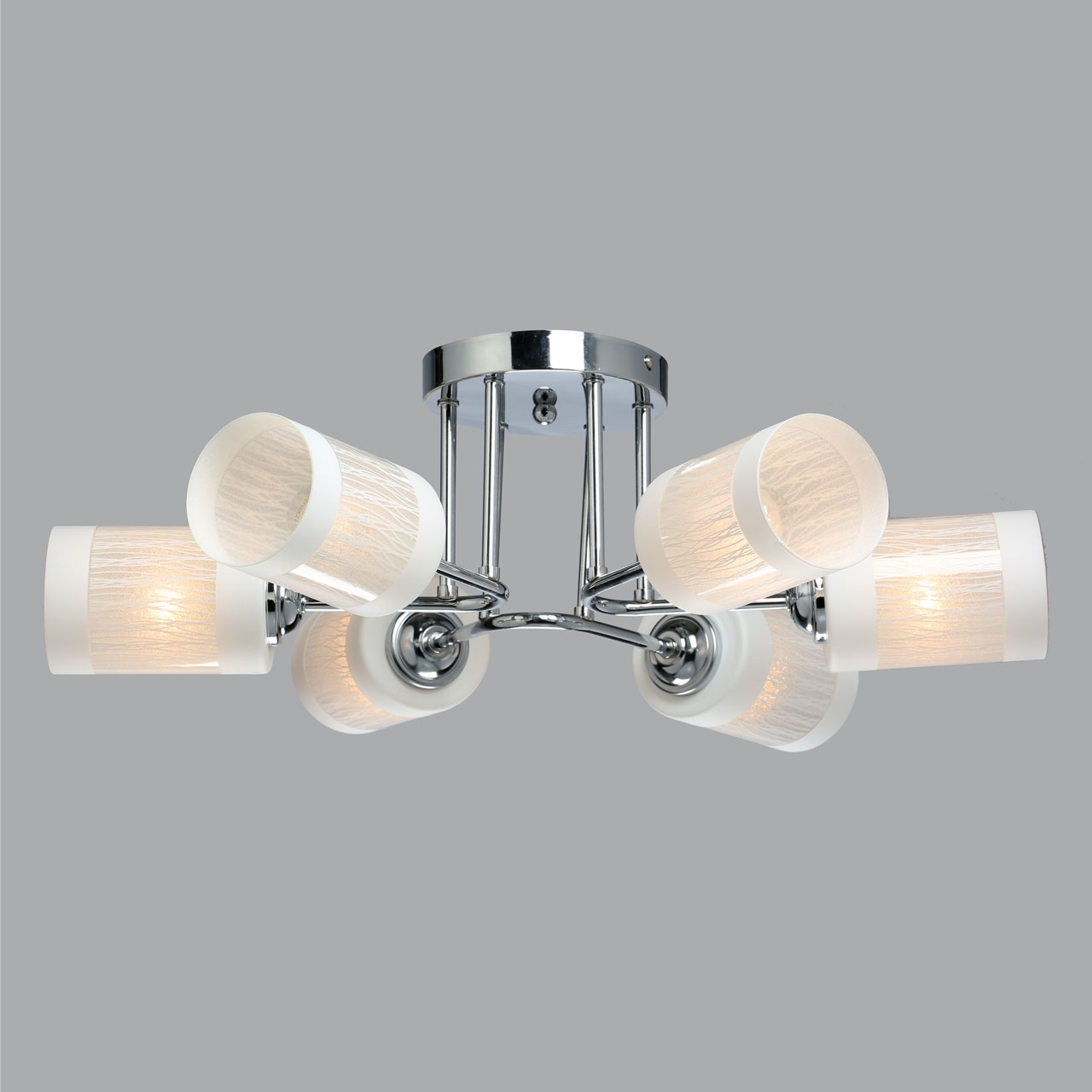 Для De City Олимпия подходят лампы с цоколем Е27 общей мощностью 360 Вт. Чтобы управлять интенсивностью освещения, можно встроить диммер. Направление потока света в разные стороны из 6 плафонов позволяет равномерно осветить помещение.