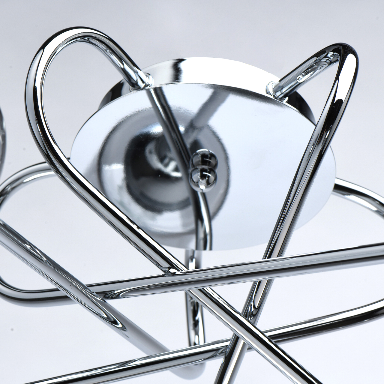 Минималистичная потолочная люстра De City Олимпия 638014805 обладает ультрасовременным стильным обликом, который дополнит интерьер контемпорари, хай-тек или минимализм. Металлическое хромированное основание люстры представляет собой сложное переплетение рожков, которые венчаются цилиндрическими плафонами, выполненными из тонированного стекла оттенка лондонского дыма.