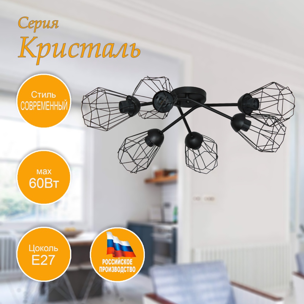 - Цвет плафонов: Черный