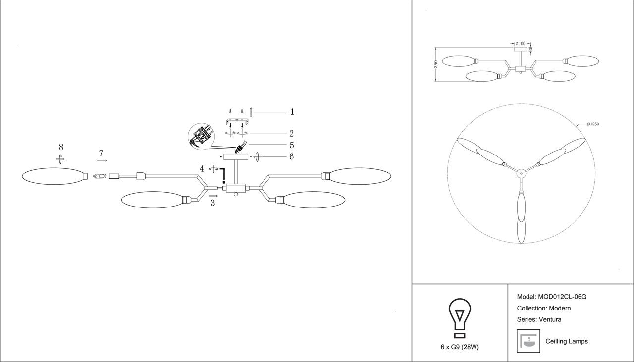 - Количество ламп: 6 шт