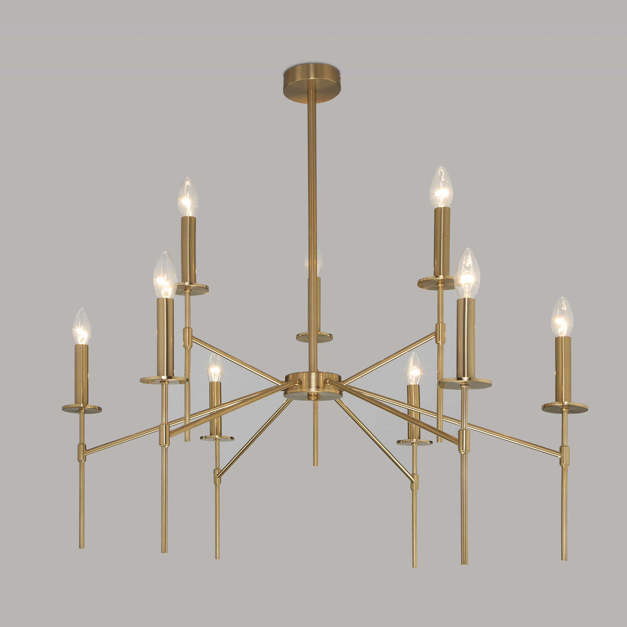 Люстра Anders в цвете латунь- это острое сочетание трендовой геометрии и концепции традиционной люстры-канделябра. Девять открытых источников света без привычных для нас стеклянных плафонов подчеркивают четкость линий модели и оригинальность задумки. В светильнике используются сменные лампы с цоколем E14. Благодаря гармоничному сочетанию классических и современных дизайн-приемов потолочный светильник Anders создаст запоминающийся визуальный образ в любом интерьере гостиной, спальни или кухни.