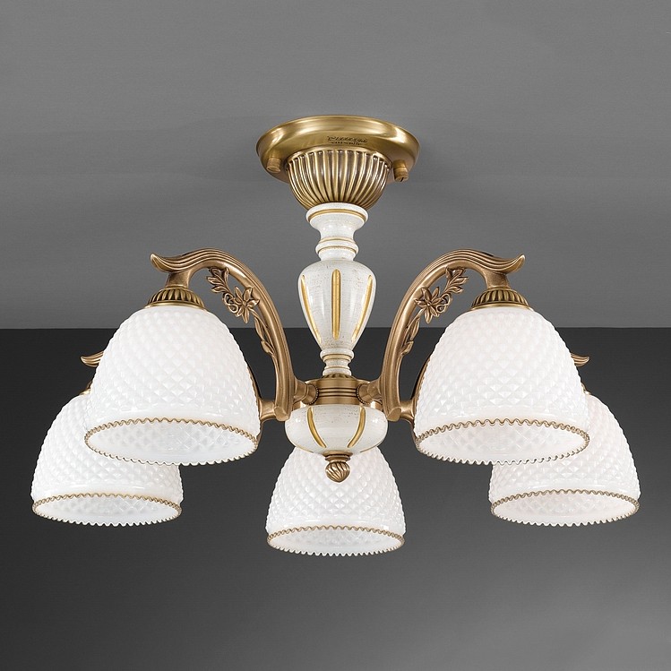Потолочная люстра Reccagni Angelo PL 8626/5 Итальянского производсва – лучшее соотношение цена-качество. Этот светильник Классического стиля хорошо подойдет Для спальни и придаст помещению мягкий и приятный свет. Плафоны белые из стекла. Арматура бронза из металла. Кол-во ламп - 5шт. Общая мощность 300W