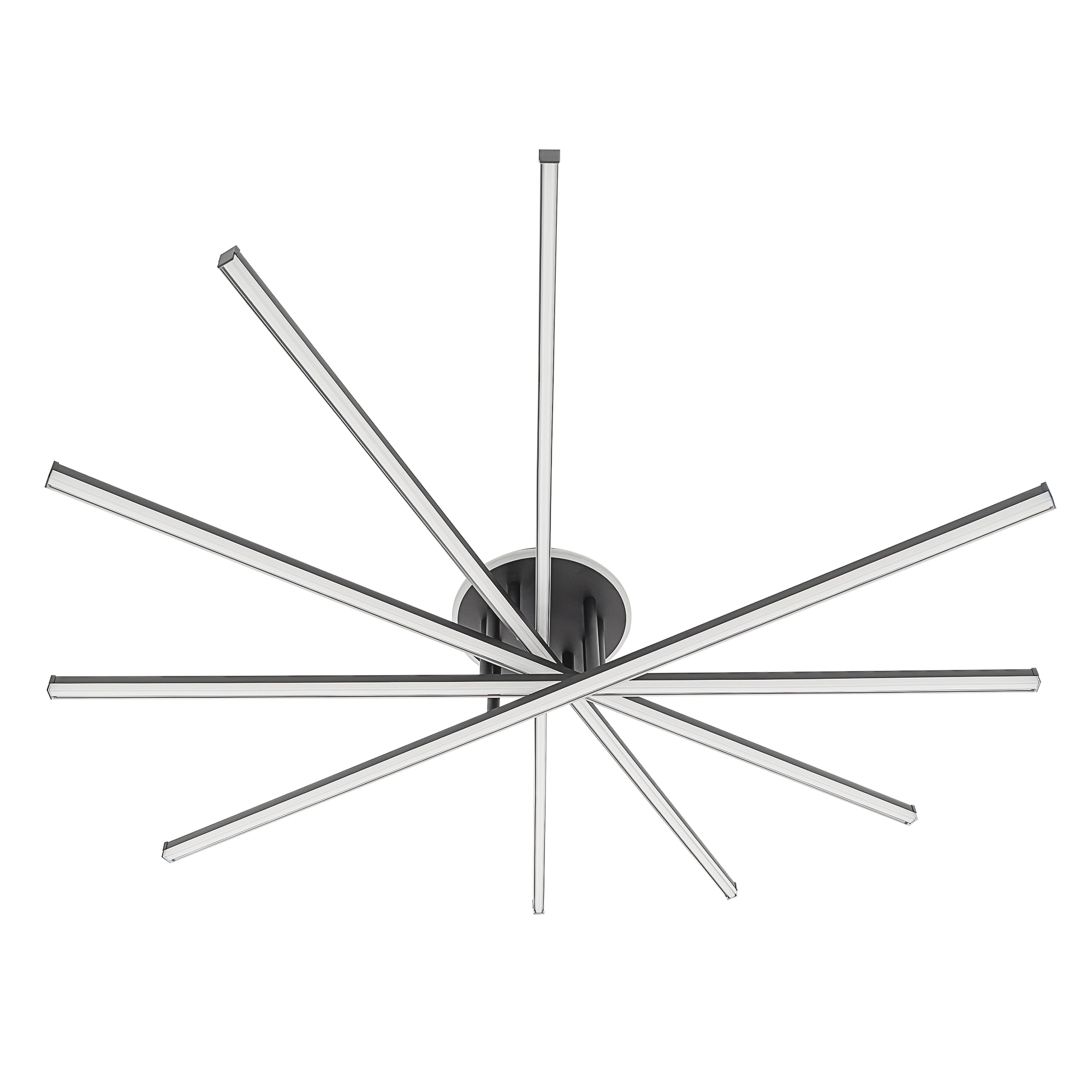 Корпус люстры — из металлического сплава, окрашенного черной краской. Глянцевый рассеиватель — из специализированного оптического полимера. У люстры есть изящная подсветка потолка.