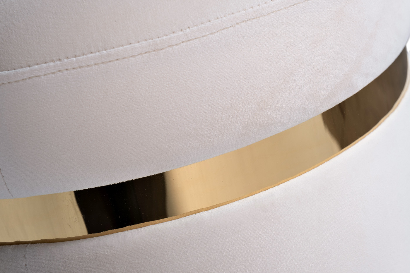Мебель светлых оттенков - современный тренд. Пуф выполнен в мягком велюре нежного оттенка слоновой кости с золотой отделкой из нержавеющей стали. Купив пуф в прихожую, можно существенно сменить дизайнерские акценты и обновить домашнее пространство. Велюровый пуф – прекрасное дополнение к интерьеру и отличный помощник для грамотного зонирования домашнего или рабочего пространства. Круглый пуф выполнен в кремовом цвете и декорирован золотистой отделкой. Такое изящное сочетание не оставит вас равнодушными. Пастельный кремовый оттенок ассоциируется с гармонией и уютом.