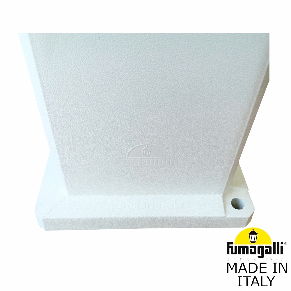 Садовый светильник-столбик FUMAGALLI серии ELISA, модель ELISA 800 - изготовлены в Италии. Используются для освещения парковых дорожек, тротуарных настилов, газонов, веранд, беседок, подпорных стенок, декоративного и дизайнерского освещения. Подойдут и для других внутренних и уличных интерьеров, где требуется ровное, дизайнерское освещение. Отражатель светильника белого цвета, раскидывает световой поток широкими лучами на четыре стороны. Это позволяет получить и высокую степень освещенности от светодиодной лампы . Высокая степень защиты от пыли и влаги IP 55 позволяет использовать садовые столбики ELISA 800 на улице без ограничений. Светильник устанавливается на землю (фундамент) или другую горизонтальную поверхность Корпус не проводит электричество! Для подсветки строений рекомендуем обратить внимание на консольный светильник ELISA WALL, который крепится на стену или другую вертикальную поверхность (забор, колонну). Если вам понадобится светильник из этой же коллекции для ландшафтной подсветки деревьев, кустарников, альпийских горок - можно использовать ELISA SPIKE на колышке. Для освещения парковых дорожек, колон заборов, ландшафтного дизайна возможно комбинировать ландшафтные светильники серии ELISA в любой последовательности. Корпус изготовлен из современного вандалостойкого не горючего полимера RESIN. Прочного, окрашенного в массе, не ржавеющего и не выгорающего на солнце, не проводящего электричество. Рассеиватель выполнен из антивандального, не мутнеющего и не горючего PMMA. Срок службы светильника - не менее 20 лет. Не требуется трансформатор. Напряжение питания - 220 В. Температура эксплуатации от -60 до +90. При заказе требуется выбрать цвет корпуса.