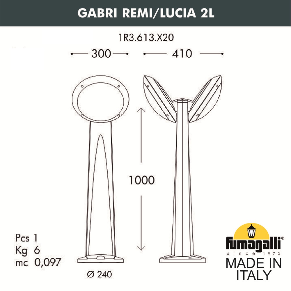 Садовый светильник-столбик наклонный Fumagalli Gabri remi/Lucia 2l 1R3. 613. X20. WYE27 в Таганроге