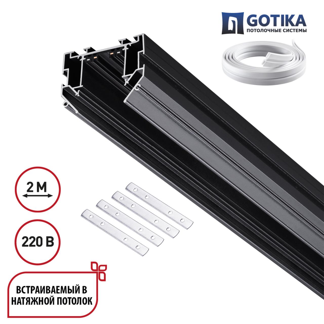 Купить "Шинопровод встраиваемый для натяжного потолка 2м Novotech VECTOR 135304 черный"