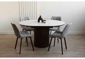 Керамический стол раскладной Woodville Лорен 100(140) snow white / черный 664691
