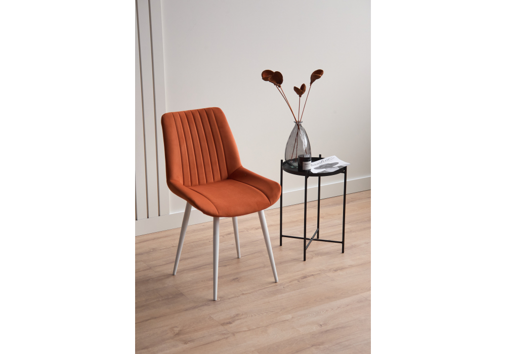 Материал каркаса - металл; Материал сиденья - велюр; Материал обивки - велюр; Цвет ножек - белый; Ширина - 50; Глубина - 56; Высота - 82; Ширина сиденья - 47; Глубина сиденья - 42; Высота сиденья - 48;