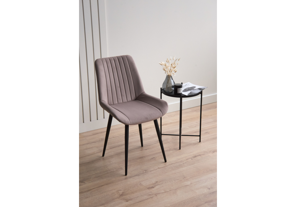 Материал каркаса - металл; Материал сиденья - велюр; Материал обивки - велюр; Цвет ножек - черный; Ширина - 50; Глубина - 56; Высота - 82; Ширина сиденья - 47; Глубина сиденья - 42; Высота сиденья - 48;