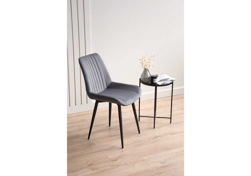 Материал каркаса - металл; Материал сиденья - велюр; Материал обивки - велюр; Цвет ножек - черный; Ширина - 50; Глубина - 56; Высота - 82; Ширина сиденья - 47; Глубина сиденья - 42; Высота сиденья - 48;