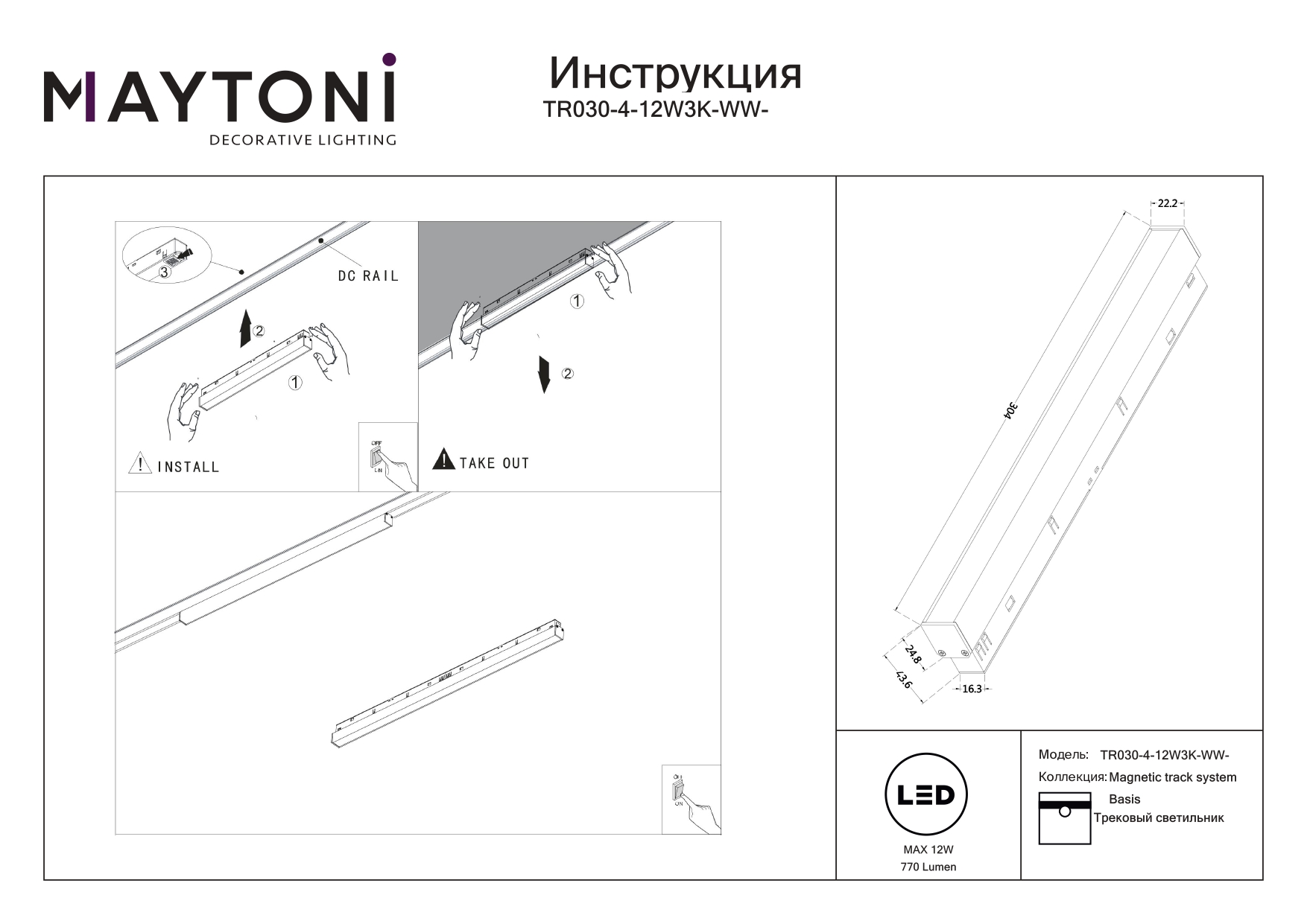Все характеристики TR030-4-12W3K-WW-DS-W