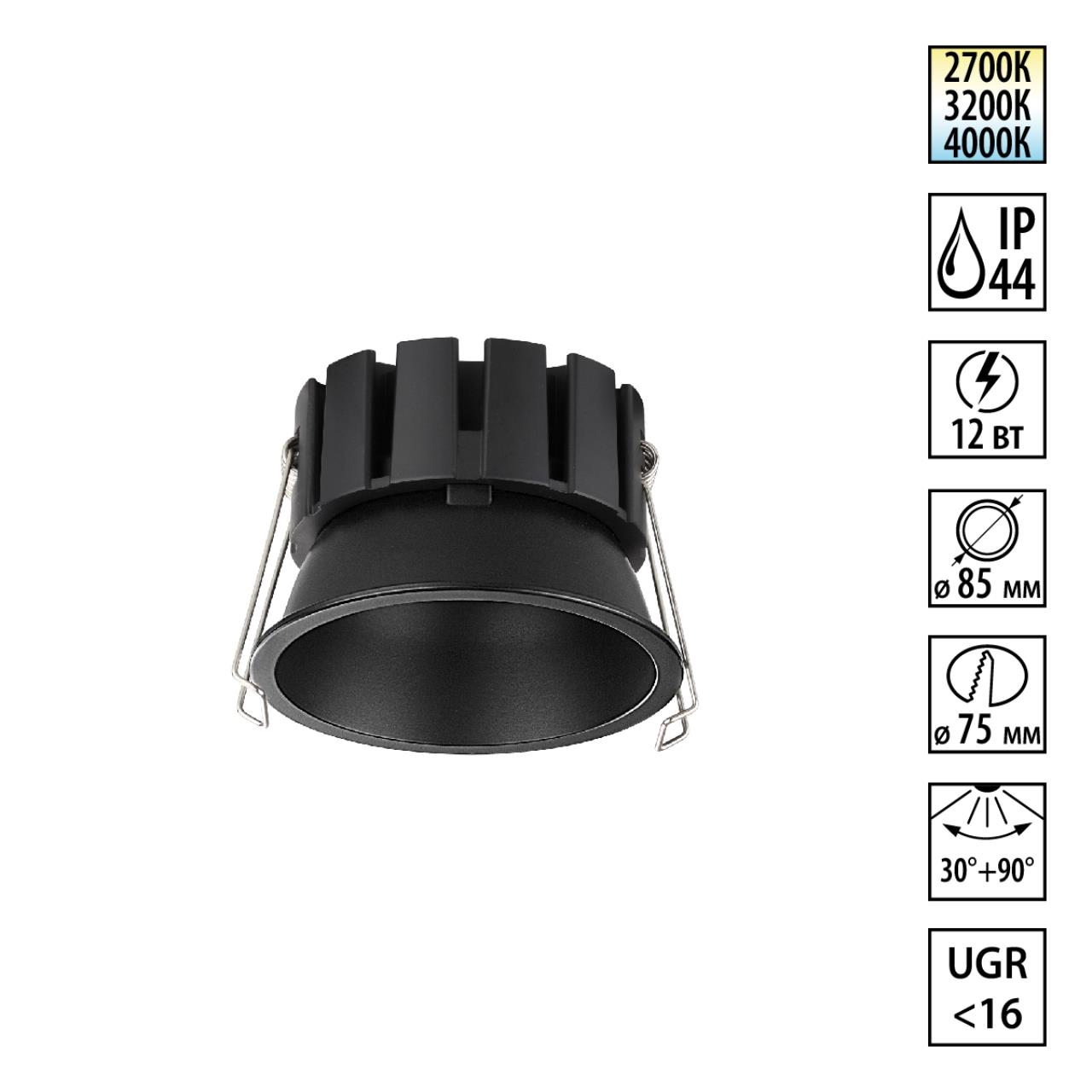 Купить "Встраиваемый светильник светодиодный с переключателем цветовой температуры Novotech SOLIS 359858 черный"